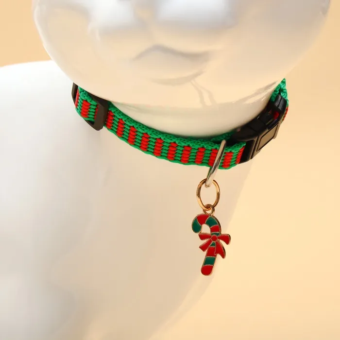 Ошейник с новогодним подвесом "Леденец", 30 х 1 см, капрон, зелёный – это стильный и яркий аксессуар для вашей кошки, который добавит праздничного настроения и эксклюзивности в её образ. Сочетая в себе качество, комфорт и необычный дизайн, этот ошейник станет отличным выбором для зимних праздников!