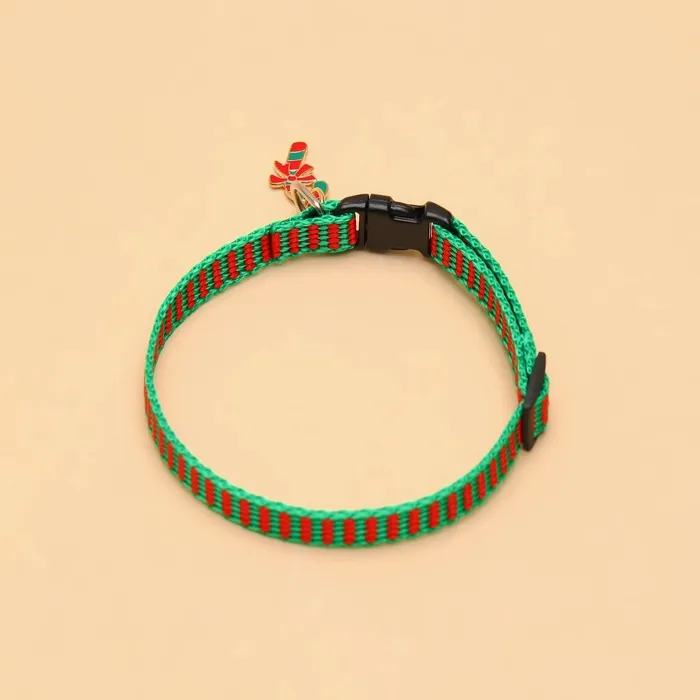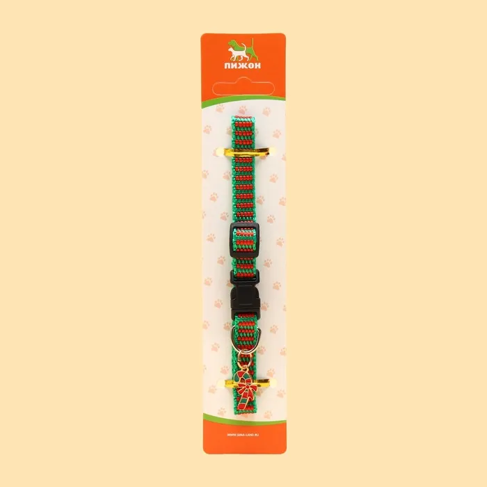 Креативный дизайн: Ошейник выполнен в насыщенном зелёном цвете и украшен ярким новогодним подвесом в виде леденца, что придаёт ему игривый и праздничный вид. Этот аксессуар сделает вашего питомца настоящей звездой вечеринок и фотосессий.