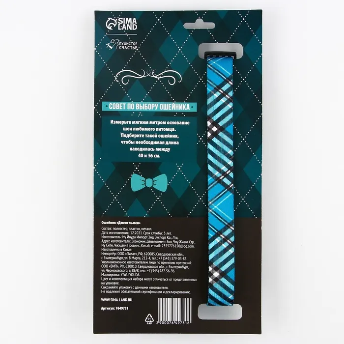 Размеры ошейника: 2,5 см, 40–55 см.