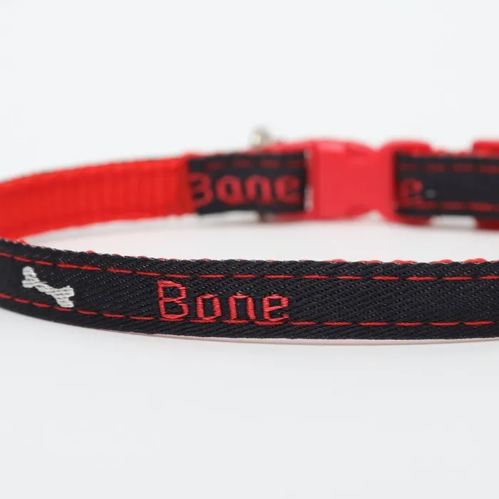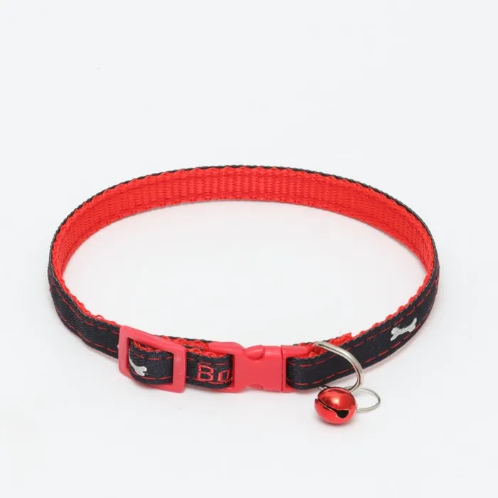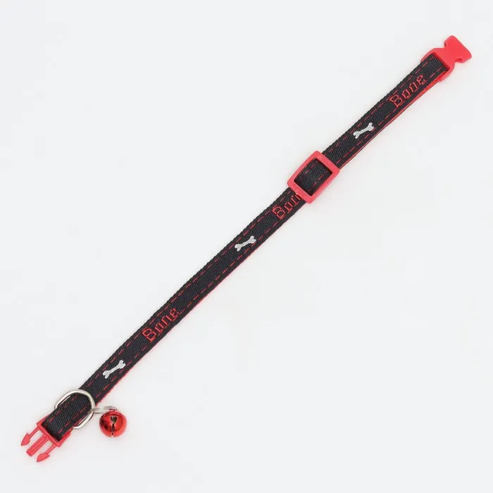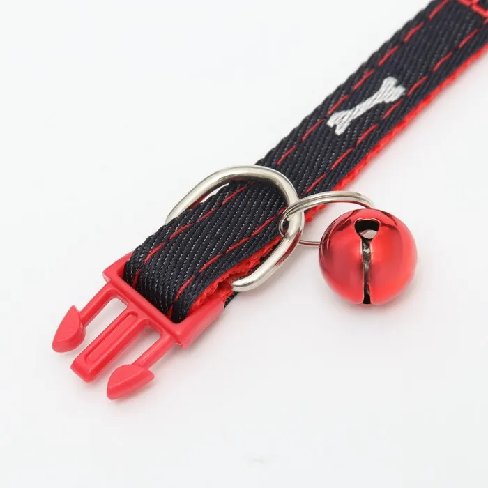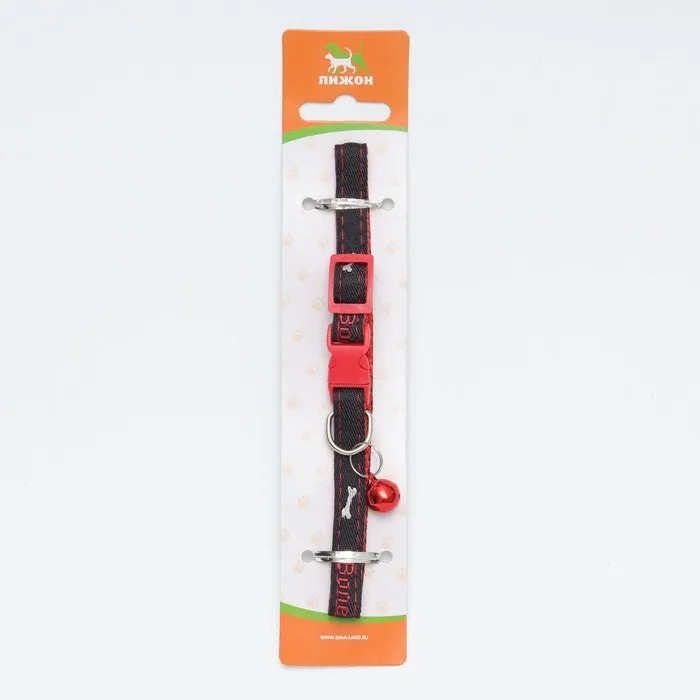 Ошейник "Джинс" полиэстер с бубенчиком, 34 х 1 см, черно-красный — Характеристики