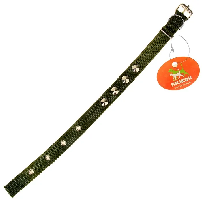 Ошейник клёпаный, 40.5 х 2 см, ОШ 26-34 см, полиэстер, тёмно-зелёный — Характеристики