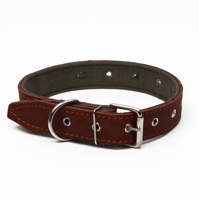 Наш кожаный ошейник обшит брезентомс внутренней стороны.