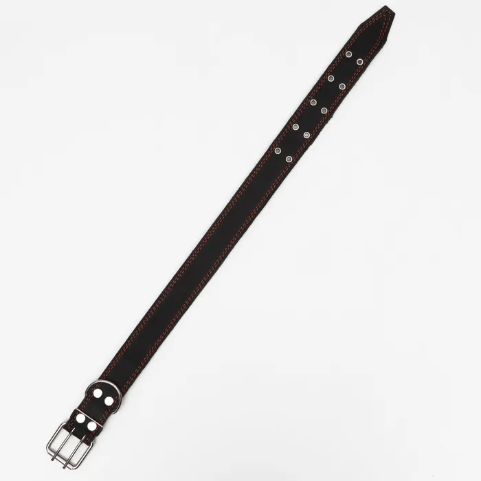 Наш кожаный ошейник обшит брезентом с внутренней стороны.
