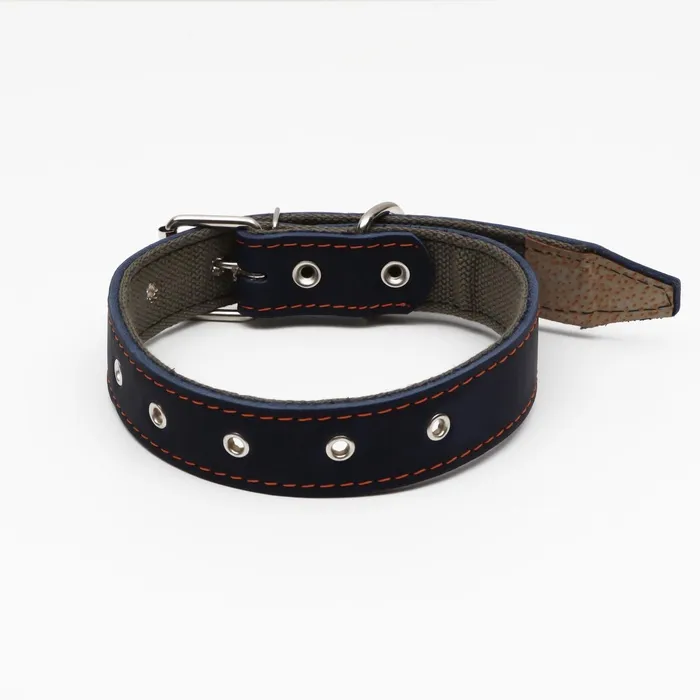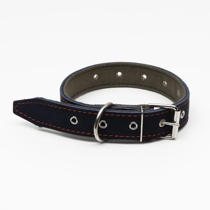 Наш кожаный ошейник обшит брезентомс внутренней стороны.