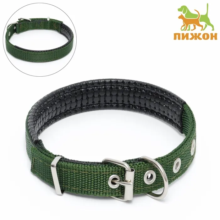 Ошейник "Комфорт" комбинированный, выполнен в темно-зелёном цвете.