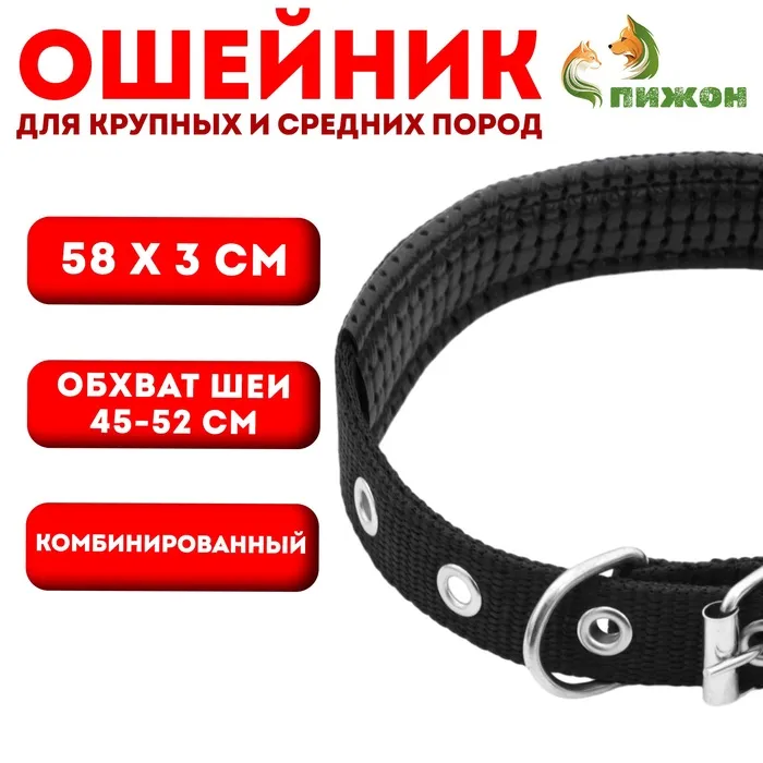 Комбинированный ошейник для собаки с мягкой, удобной вставкой на шее - это инновационный и комфортный аксессуар, созданный с учетом потребностей и благополучия вашего питомца. Ошейник состоит из двух частей: основной ленты и вставки из эко кожи. Основная лента выполнена из прочного и износостойкого материала, который гарантирует надежность и долговечность ошейника. Она имеет регулируемые пряжки, позволяющие легко и удобно подогнать ошейник под размер и форму шею вашего питомца.