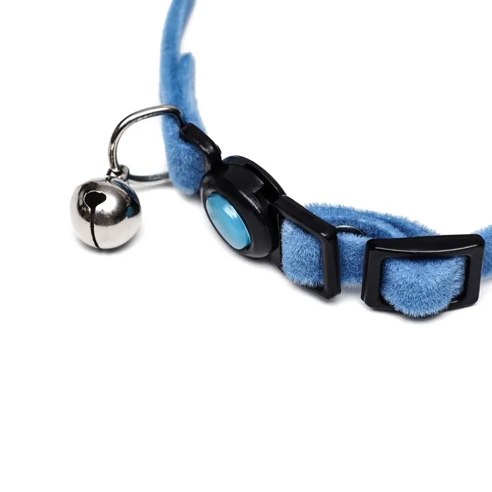 Ошейник кошачий мягкий с бубенчиком, 30 х 1 см, текстиль, голубой — Характеристики