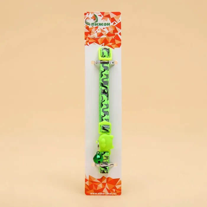 Ошейник кошачий "Котофляж", с бубенчиком, 30 х 1 см, полиэстер, зелёный – это стильный и игривый аксессуар, который подарит вашему любимцу комфорт и безопасность во время прогулок. Этот ошейник станет настоящим украшением для вашей кошки, подчеркивая её индивидуальность.