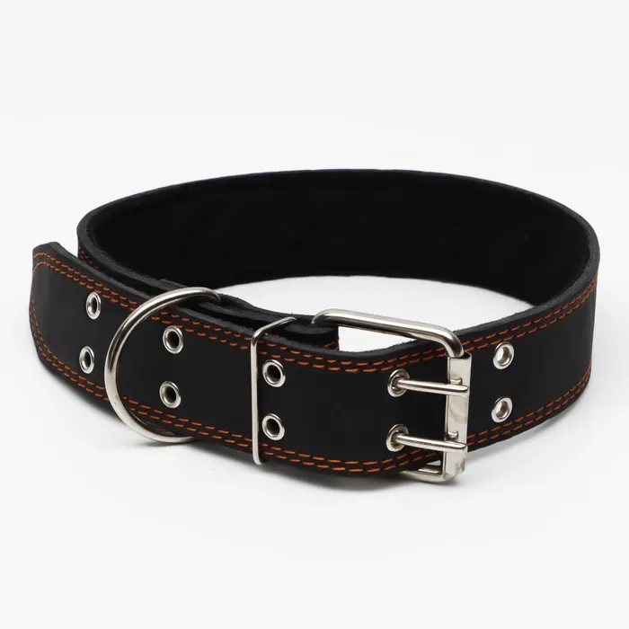 Ошейник кожаный на синтепоне, 82 х 4.5 см, ОШ 50-70 см, чёрный — Характеристики