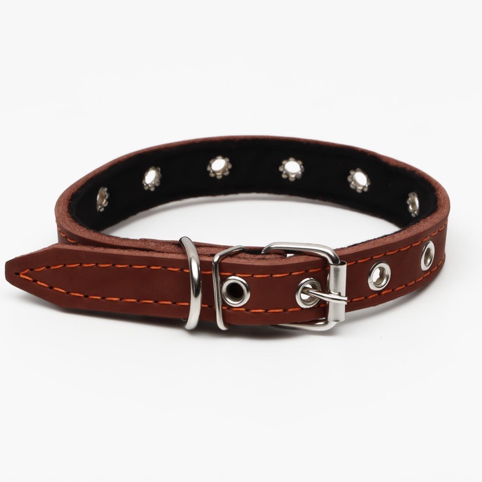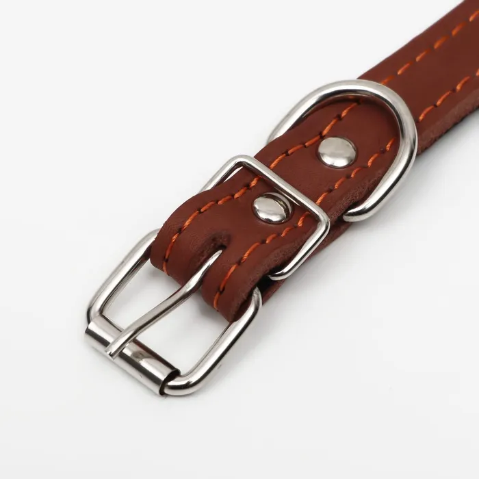 Кожаный ошейник - незаменимый аксессуар для владельцев собак всех пород и возрастов. Изделие выполнено из мягкой, но прочной кожи высокого качества с элементами из синтепона и использованием крепкой металлической фурнитуры.