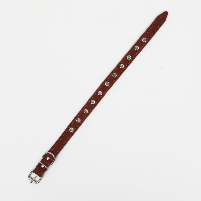 Предусмотренные отверстия позволяют удобно подгонять длину под индивидуальные параметры животного, а функциональное металлическое кольцо отлично подойдет для крепления карабина поводка, адресника или других аксессуаров.