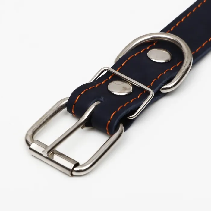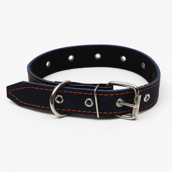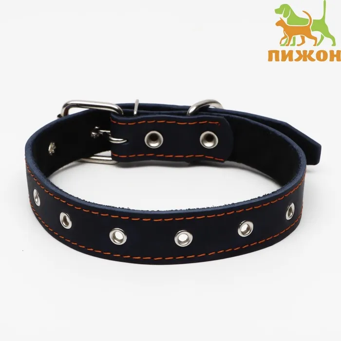 Ошейник кожаный на синтепоне, безразмерный, 65 х 3 см, ОШ 22-55 см, синий — Характеристики