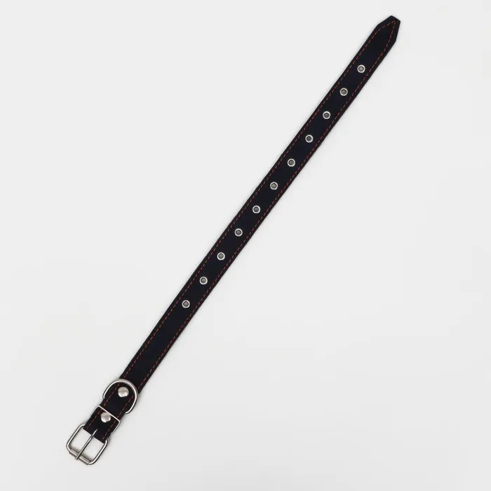 Кожаный ошейник - незаменимый аксессуар для владельцев собак всех пород и возрастов. Изделие выполнено из мягкой, но прочной кожи высокого качества с элементами из синтепона и использованием крепкой металлической фурнитуры. Предусмотренные отверстия позволяют удобно подгонять длину под индивидуальные параметры животного, а функциональное металлическое кольцо отлично подойдет для крепления карабина поводка, адресника или других аксессуаров