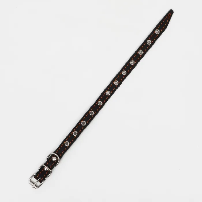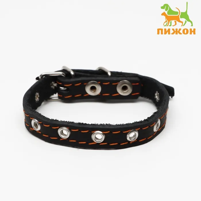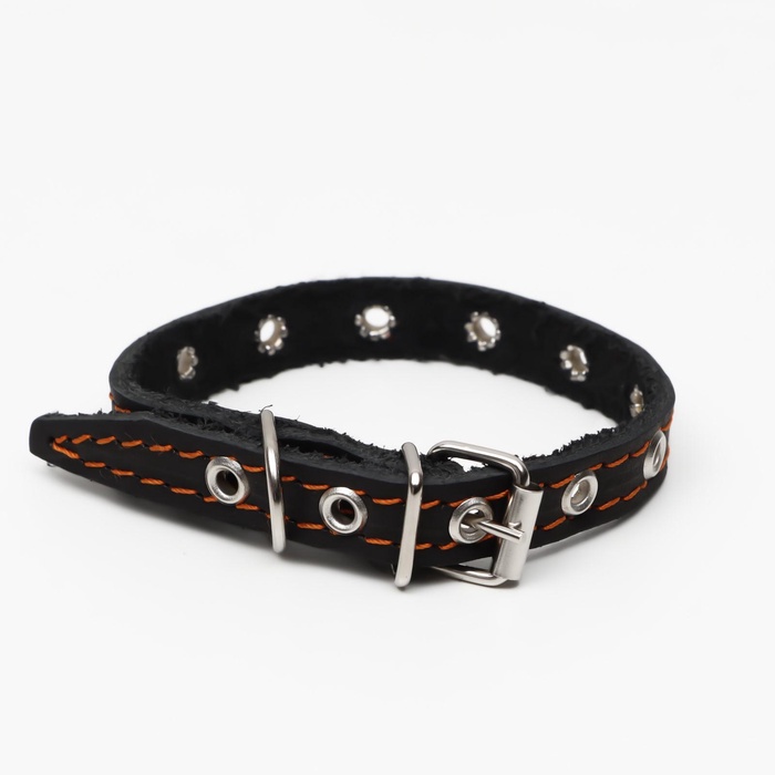 Ошейник кожаный однослойный, безразмерный, 37 х 1.5 см, ОШ 21-32 см, чёрный — Характеристики
