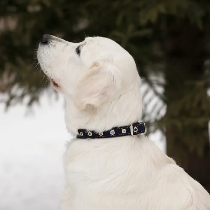 Этот стильный классический ошейник изготовлен из натуральной высококачественной кожи с использованием крепкой металлической фурнитуры.