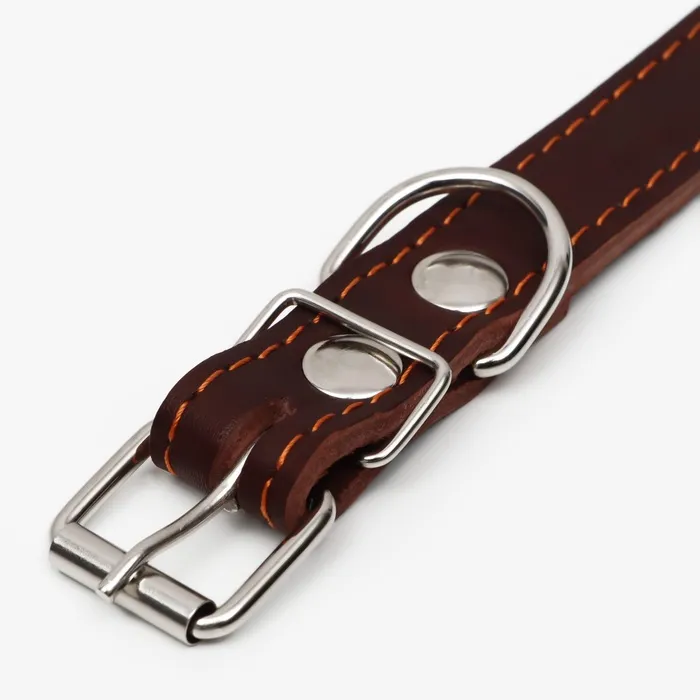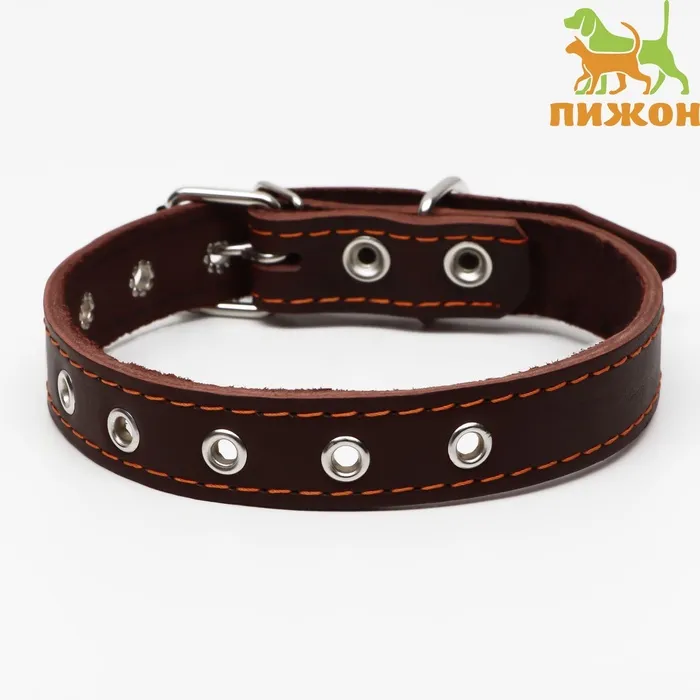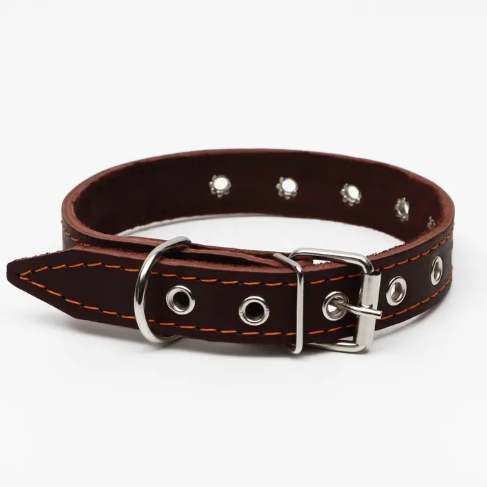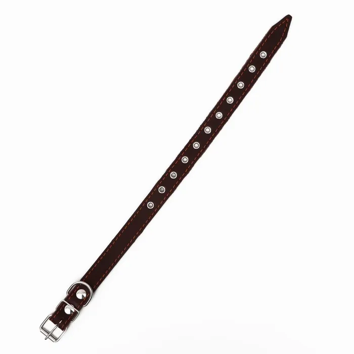 Ошейник кожаный однослойный, безразмерный, 56 х 2.5 см, ОШ 17-44 см, коричневый — Характеристики