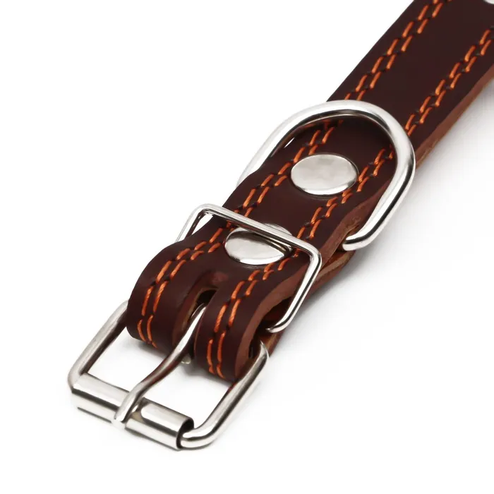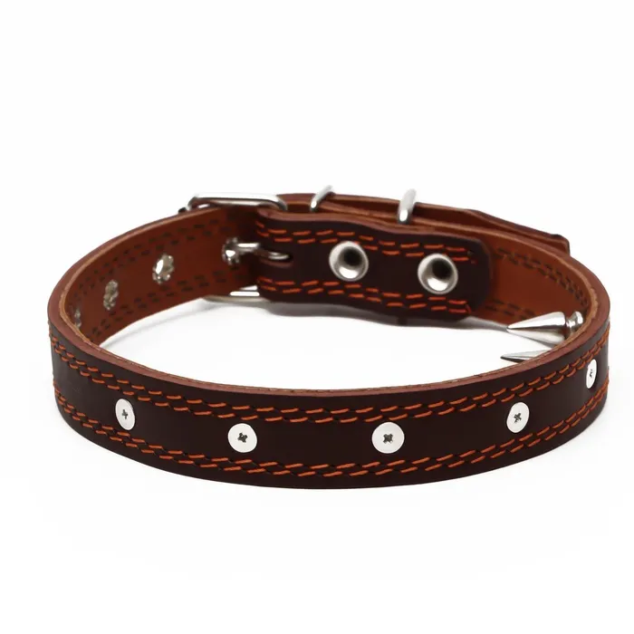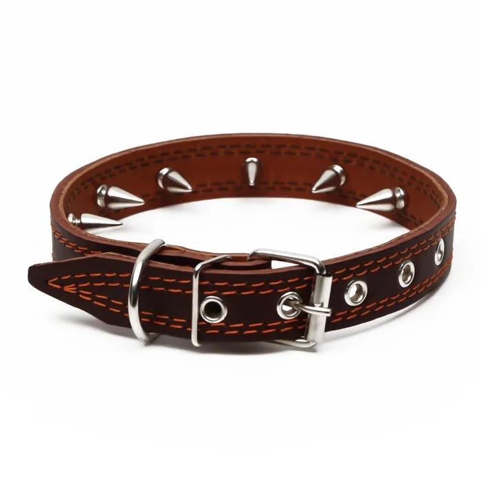 Ошейник кожаный "Строгий шип", 56 х 2.5 см, ОШ 35-45 см, коричневый — Характеристики