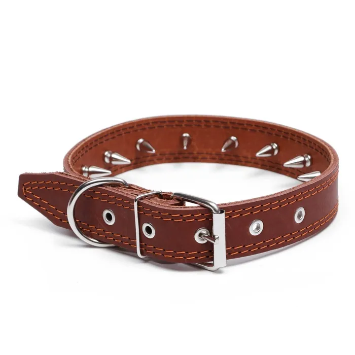 Ошейник кожаный "Строгий шип", 70 х 3,5 см, ОШ 45-60 см, коричневый — Характеристики