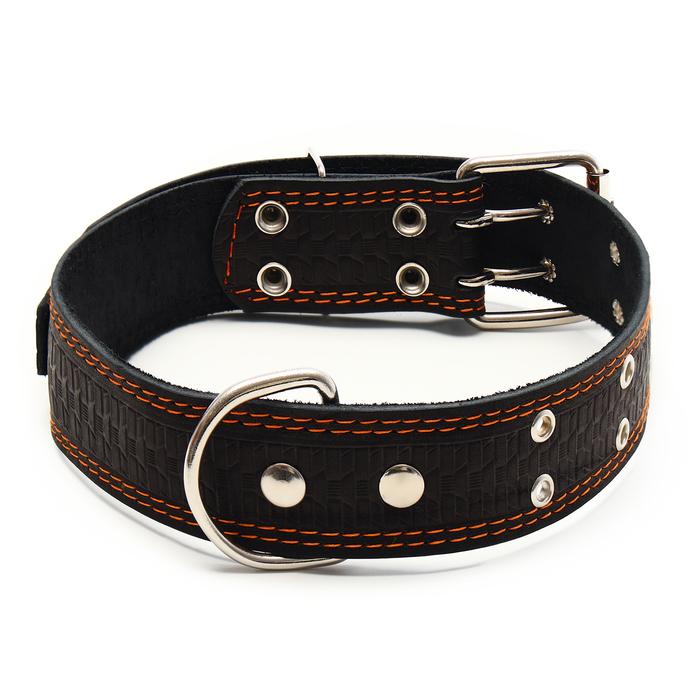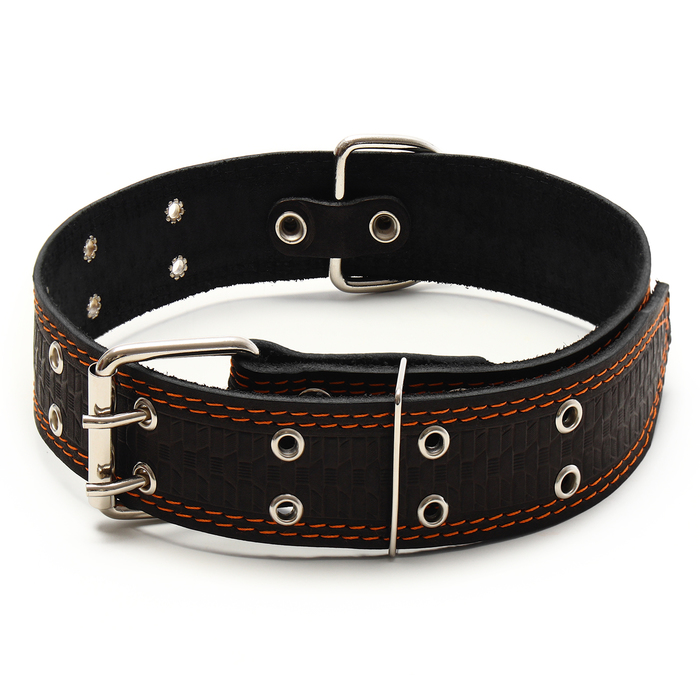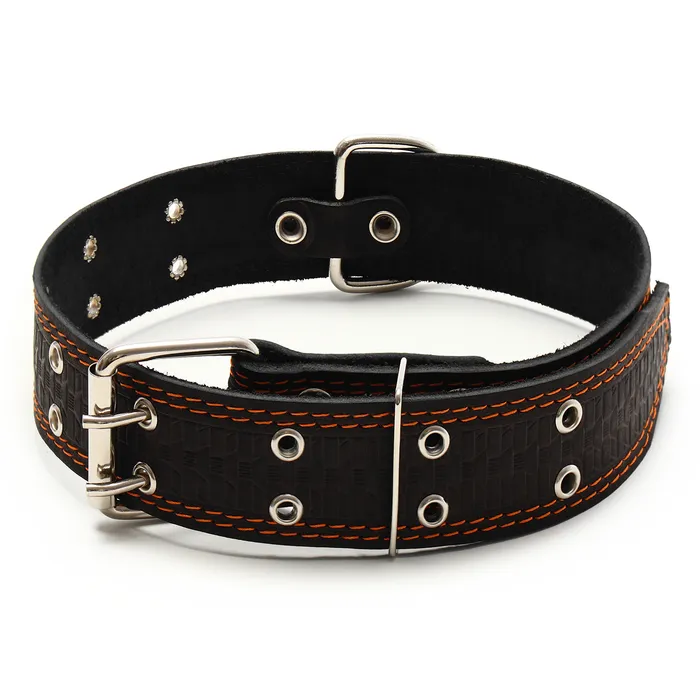Ошейник кожаный тисненый однослойный, безразмерный, 74×4.5 см, ОШ 35-65 см, микс цветов — Характеристики