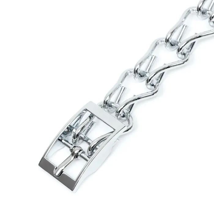Вставка из экокожи делает ошейник мягким и комфортным для шеи вашего животного, минимизируя риск потертостей и раздражений. Прочная металлическая плетенка гарантирует долговечность изделия и его способность выдерживать значительные нагрузки во время прогулок и тренировок. Ошейник оснащен удобной застежкой, которая легко и быстро фиксируется, обеспечивая простоту при надевании.