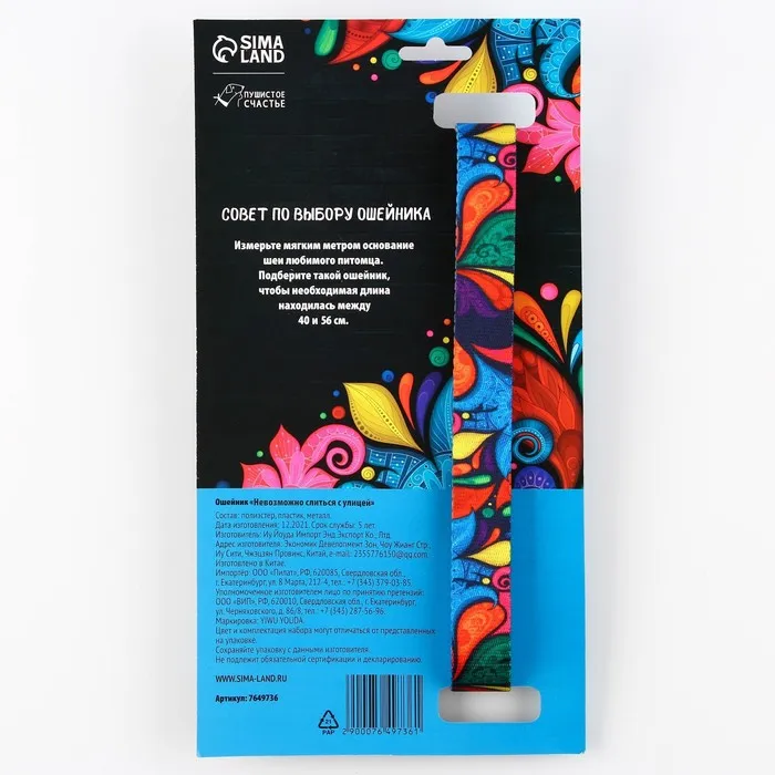Ошейник «Невозможно слиться с улицей», застёжка - фастекс, 2.5 см, 40-55 см — Характеристики