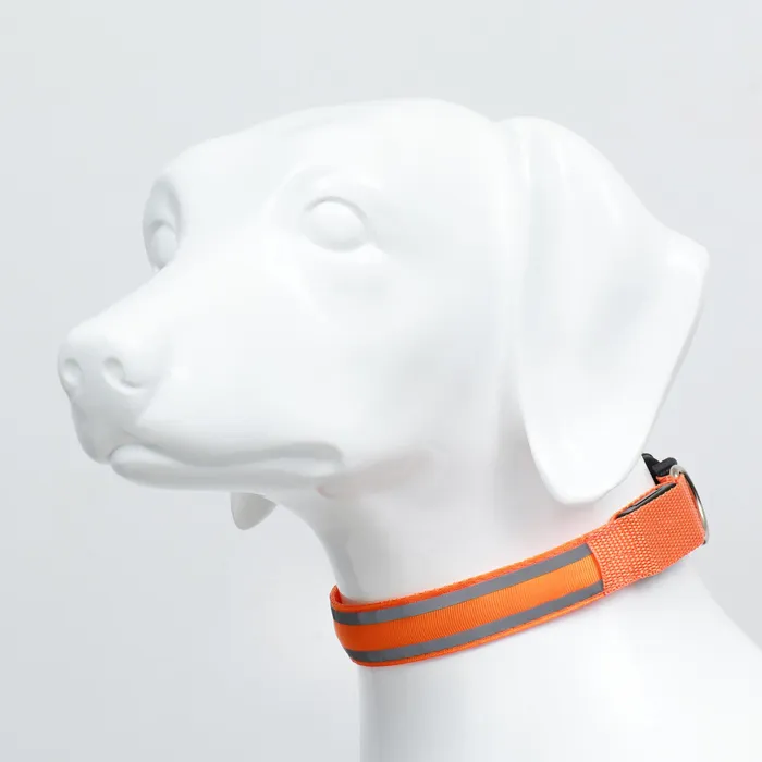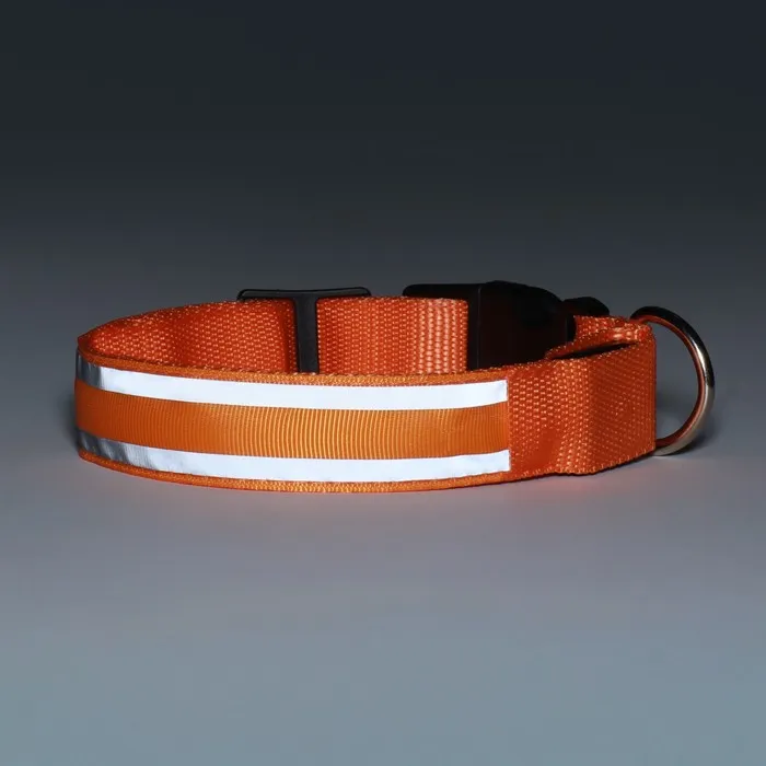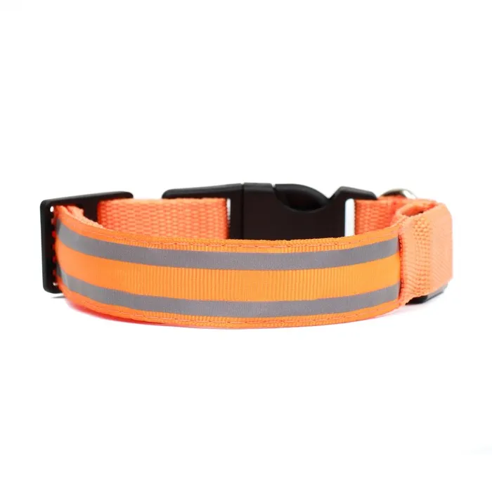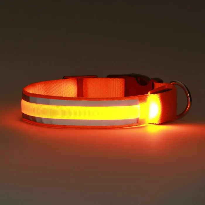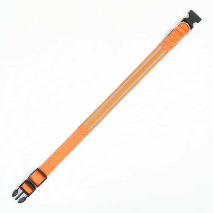 Ошейник с подсветкой Двойная полоса размер XL, ОШ 52-60 х 2,5 см 3 режима свечения оранж