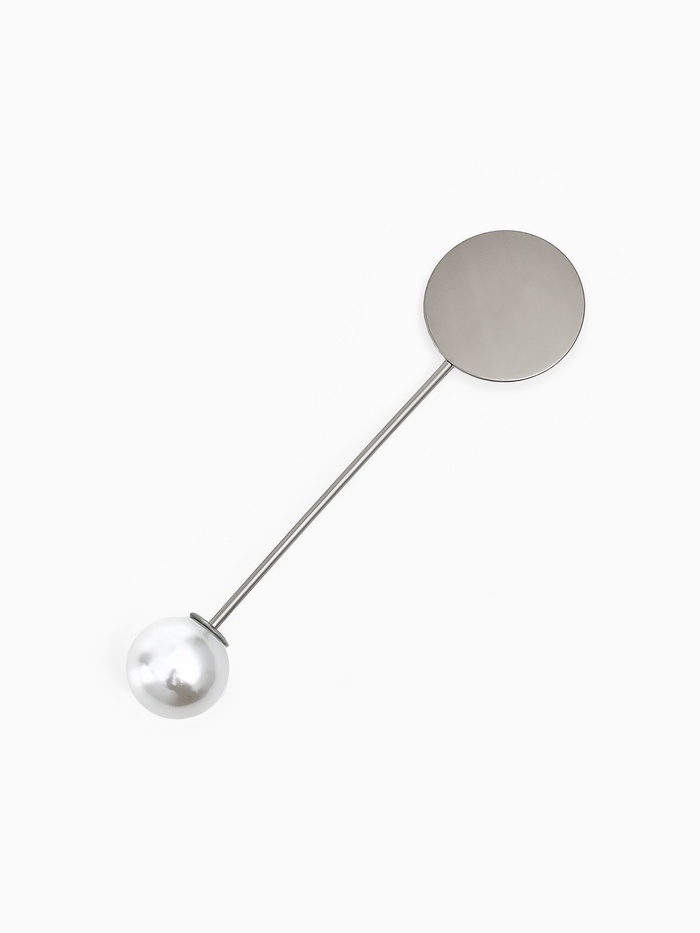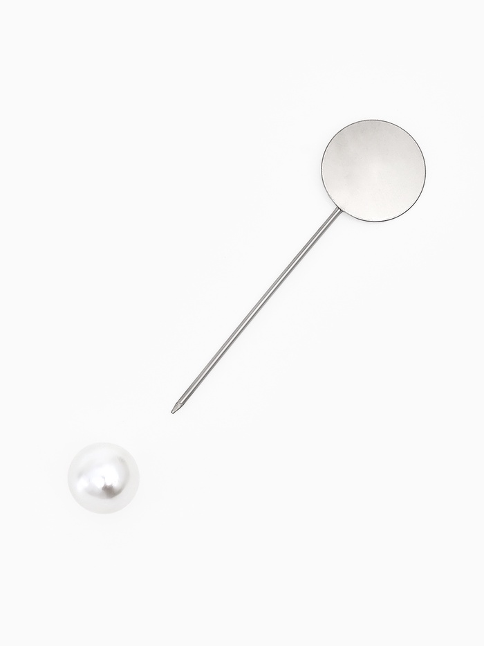 Основа «Брошь-игла» с бусиной d=1 см (набор 5 шт.), L=5 см, площадка 1.5 см, цвет серебро