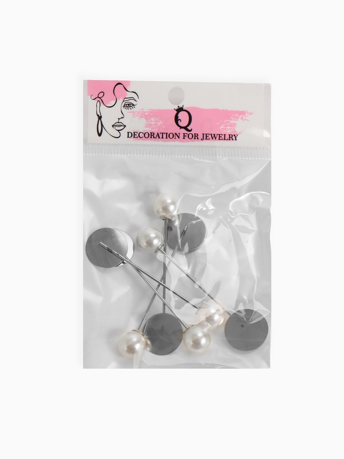 Основа «Брошь-игла» с бусиной d=1 см (набор 5 шт.), L=5 см, площадка 1.5 см, цвет серебро — Характеристики