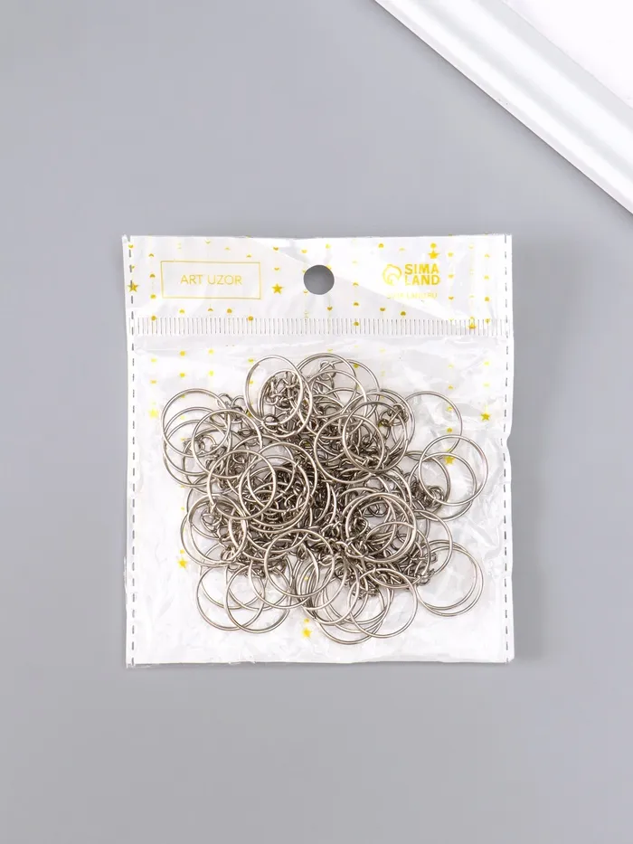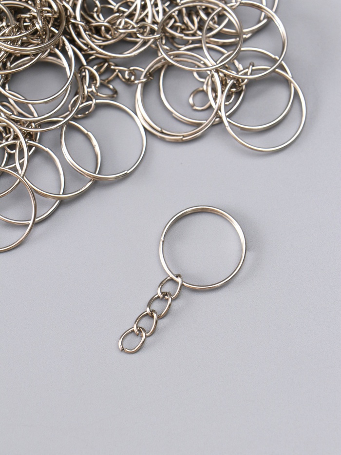 Основа для брелока кольцо металл с цепочкой, серебро d=1.8 см, для цепочки 1.8 см, набор 60 шт. — Характеристики