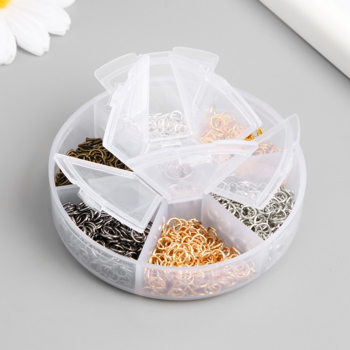 Кольца зажимные металл в шкатулке "Разноцветные" 0,7х5 мм 1200 шт 8х8х2 см