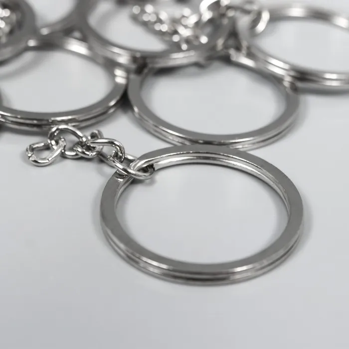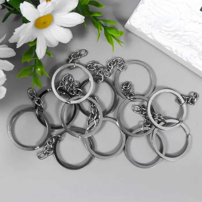 Основа для брелока кольцо плоское металл с цепочкой, серебро, 3.2×3.2 см, набор 12 шт.
