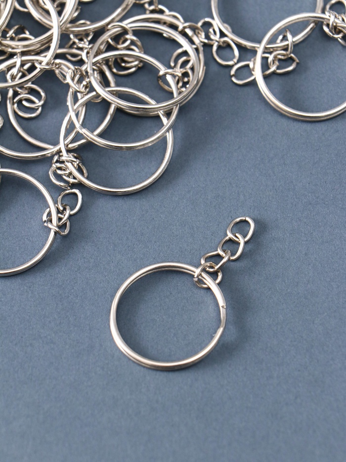 Основа для брелока кольцо с цепочкой, металл под серебро, 2.5×2.5 см, набор 40 шт.