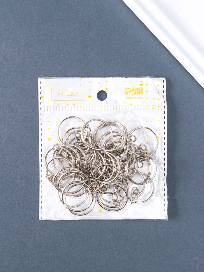 Основа для брелока кольцо с цепочкой, металл под серебро, 2.5×2.5 см, набор 40 шт. — Характеристики