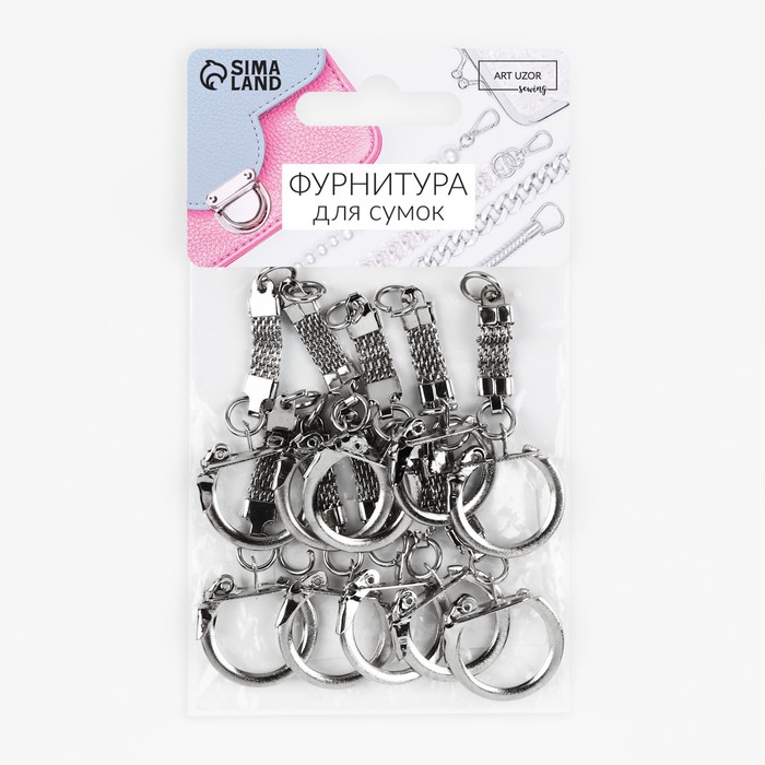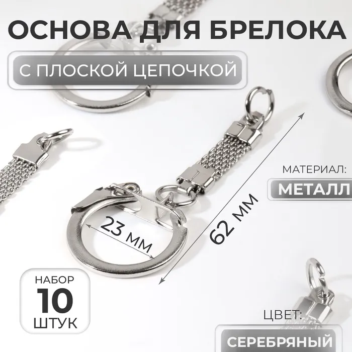 Основа для брелока, с плоской цепочкой, d=23 мм, 6.2 см, 10 шт., цвет серебряный — Характеристики