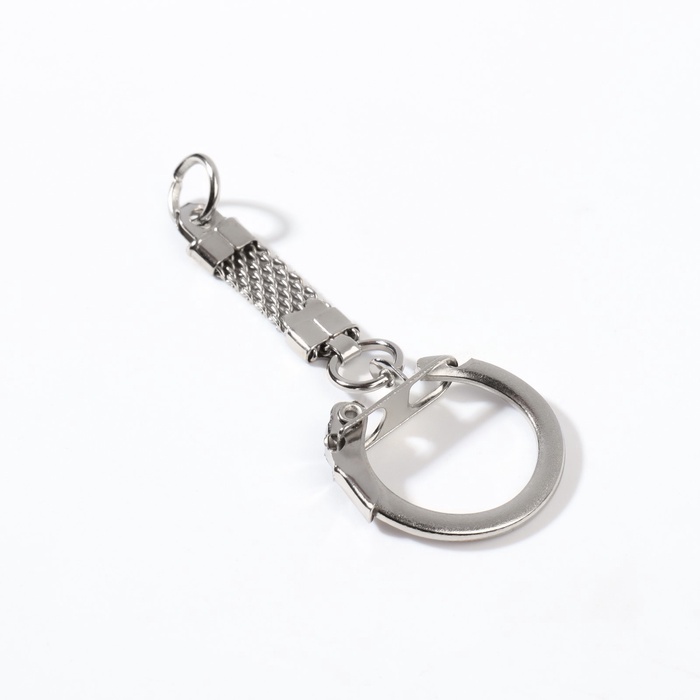 Основа для брелока, с плоской цепочкой, d=23 мм, 6.2 см, 10 шт., цвет серебряный