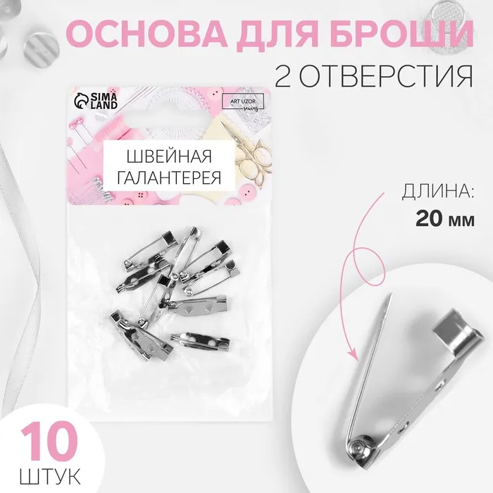 Основа для броши, 2 отверстия, 20 мм, 10 шт., цвет серебряный — Характеристики
