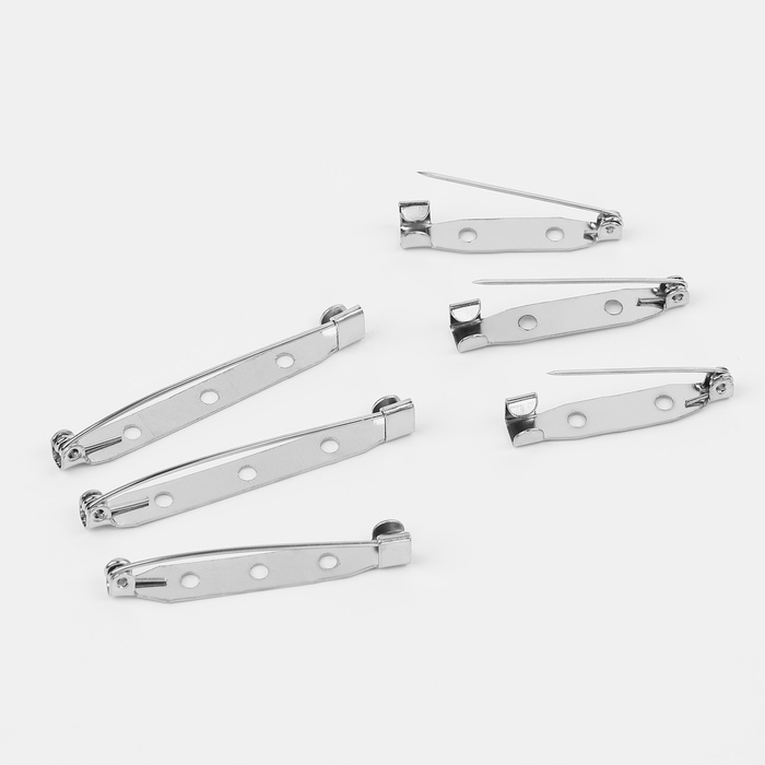 Основа для броши, 45/40/32/30/25/20 мм, набор 12 шт., цвет серебряный — Характеристики