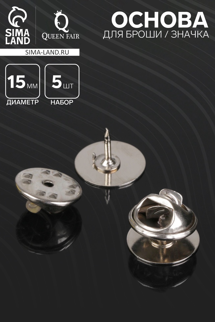 Основа для броши/значка (набор 5 шт.), площадка 1.5 см, цвет серебро — Характеристики