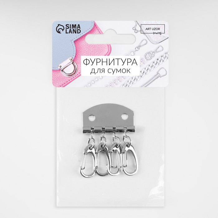 Металлическая основа для ключницы с четырьмя карабинами размером 34×50 мм в серебристом цвете — это практичный элемент для создания или обновления ключниц и брелочных аксессуаров. Ее прочная конструкция и надежные карабины обеспечивают безопасное крепление ключей и брелоков, а универсальный дизайн подходит для различных стилей и материалов. Такой набор станет отличным решением для тех, кто ценит качество и функциональность в аксессуарах.