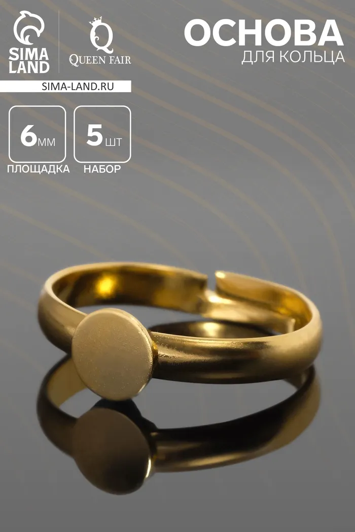 Основа для кольца регулируемая с платформой 6 мм в цвете золото — идеальный аксессуар для создания уникальных и стильных украшений. Регулируемая конструкция позволяет легко подогнать основу под любой размер пальца, а золотой оттенок придает изделию элегантность и изысканность.