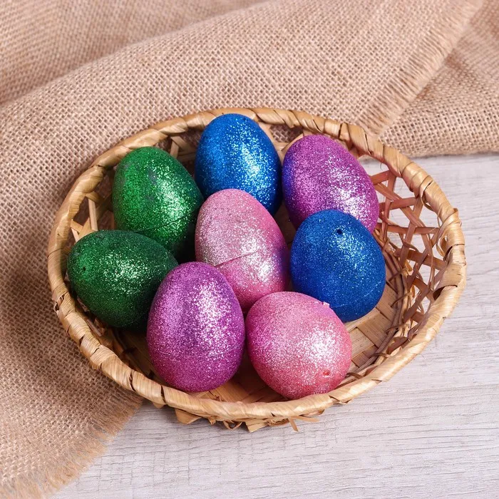 Основа для творчества «Яйцо с блёстками», набор 8 шт, размер 1 шт: 4×6 см, цвета МИКС — Характеристики
