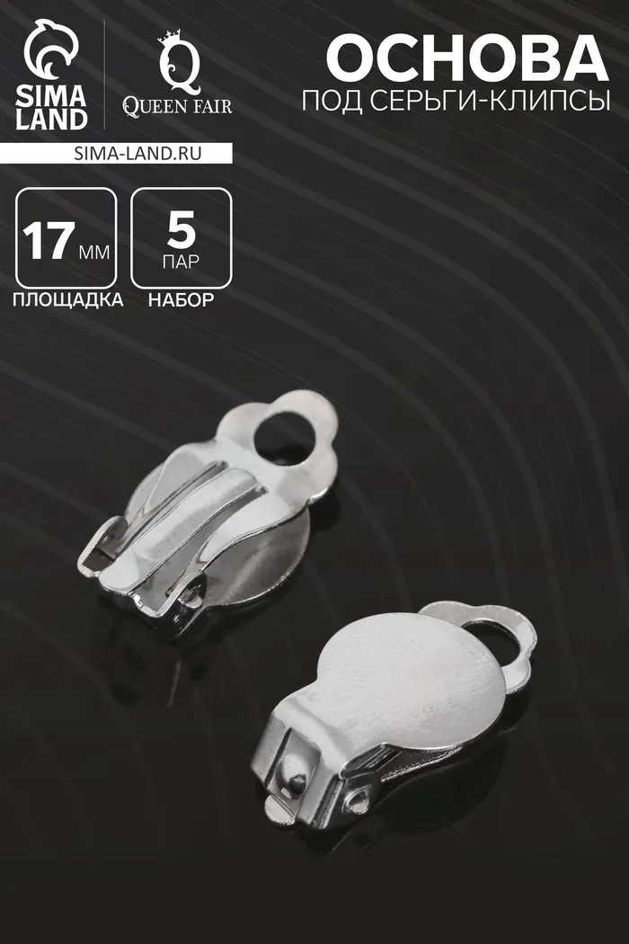 Основа под серьги-клипсы, 17 мм (набор 5 пар), цвет серебро — Характеристики