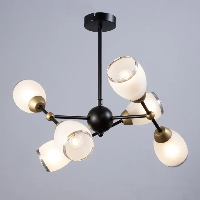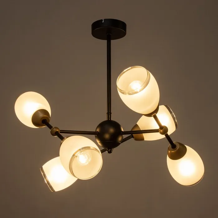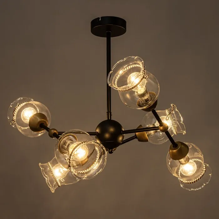 - Простота использования: Шесть патронов E14 обеспечивают достаточную мощность для качественного освещения, а возможность использования светодиодных ламп делает люстру энергоэффективной.