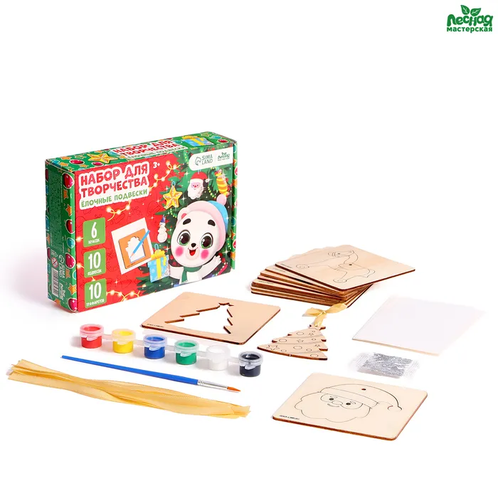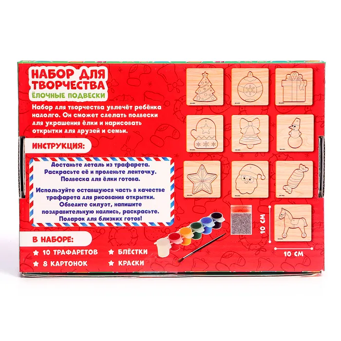 Набор для творчества увлечёт ребёнка надолго. Он сможет сделать подвески для украшения ёлки и нарисовать открытки для друзей и семьи.