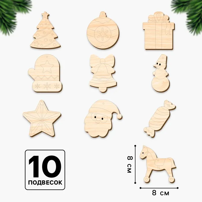 Основы для росписи и выжигания на новый год «Роспись по дереву. Ёлочные подвески», набор для творчества — Характеристики