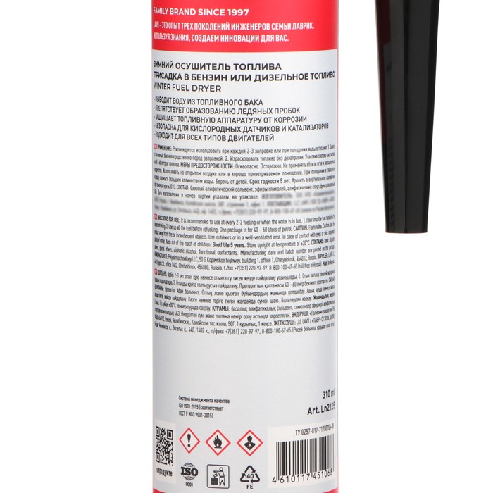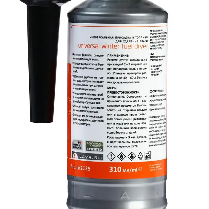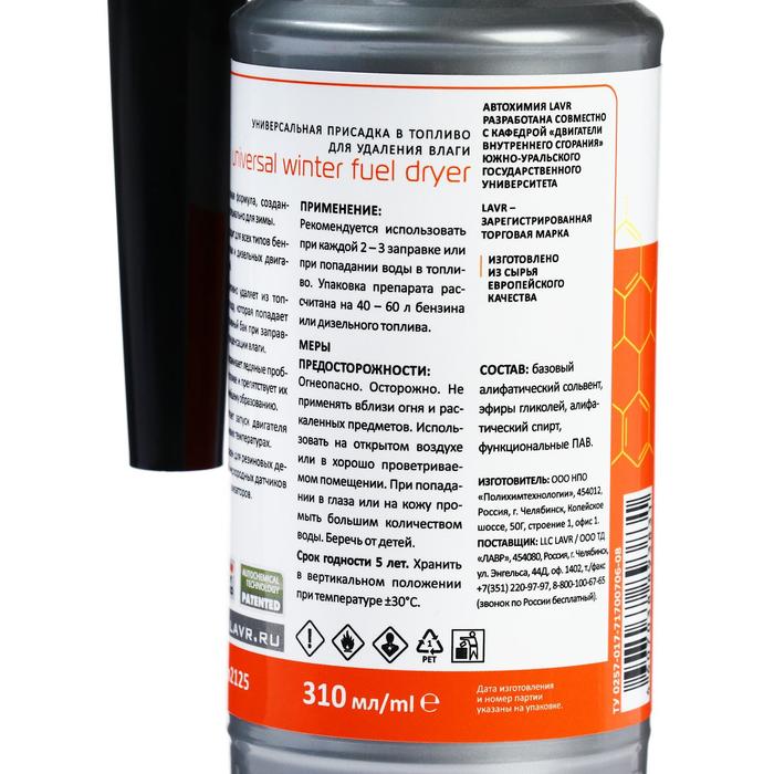 Осушитель топлива Lavr зимний, 310 мл на 40-60 л Ln2125 — Характеристики