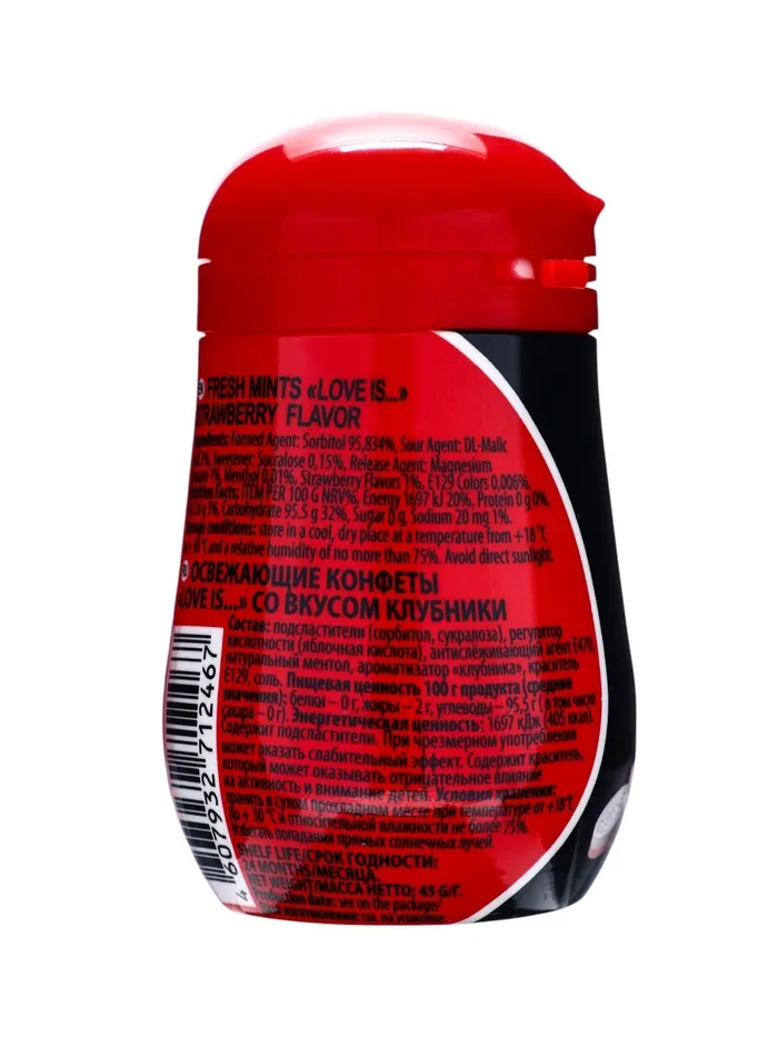 Освежающие конфеты "Love is..." со вкусом клубники 12х6х45г — Характеристики