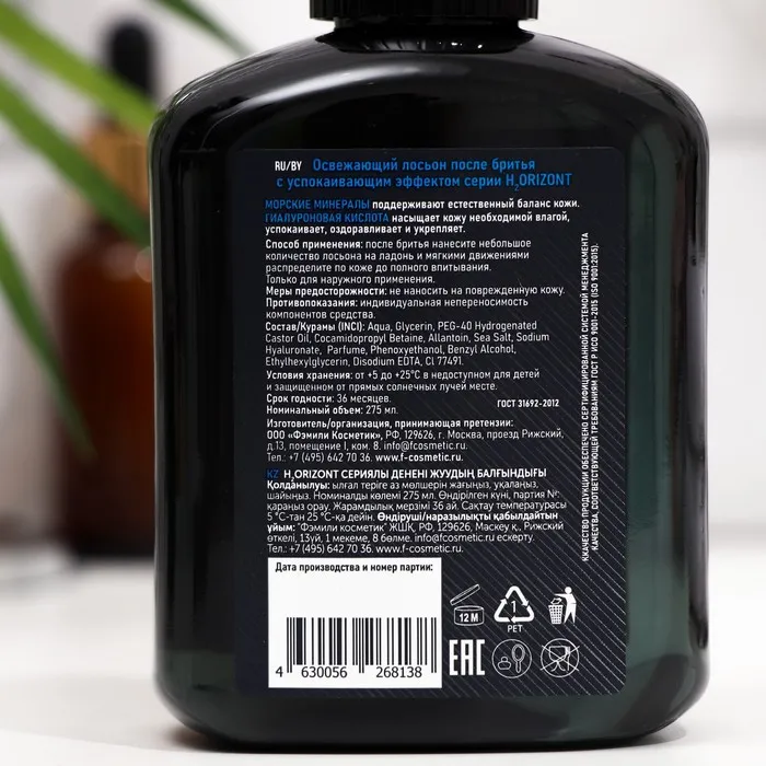 Способ применения: после бритья нанесите небольшое количество лосьона на ладонь и мягкими движениями распределите по коже до полного впитывания. Только для наружного применения.