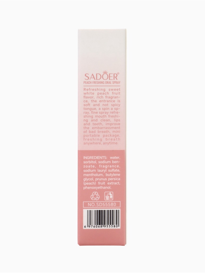 Освежитель дыхания Sadoer со вкусом персика, 18 мл — лёгкий и эффективный способ мгновенно освежить дыхание в любой ситуации.