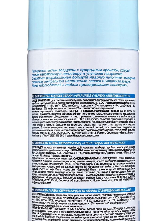 Освежитель воздуха Air pure by Alpen альпийское утро, аэрозоль, 300 мл — Характеристики